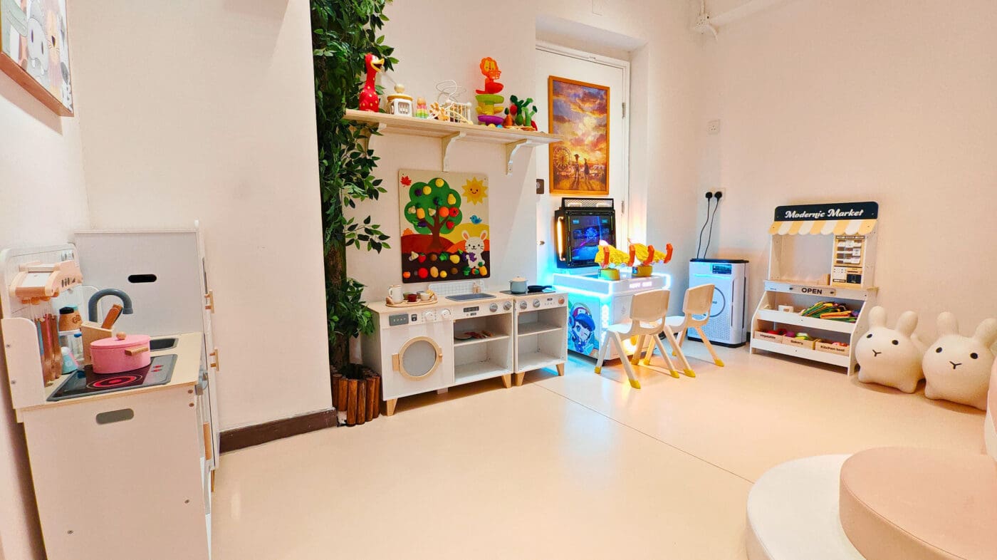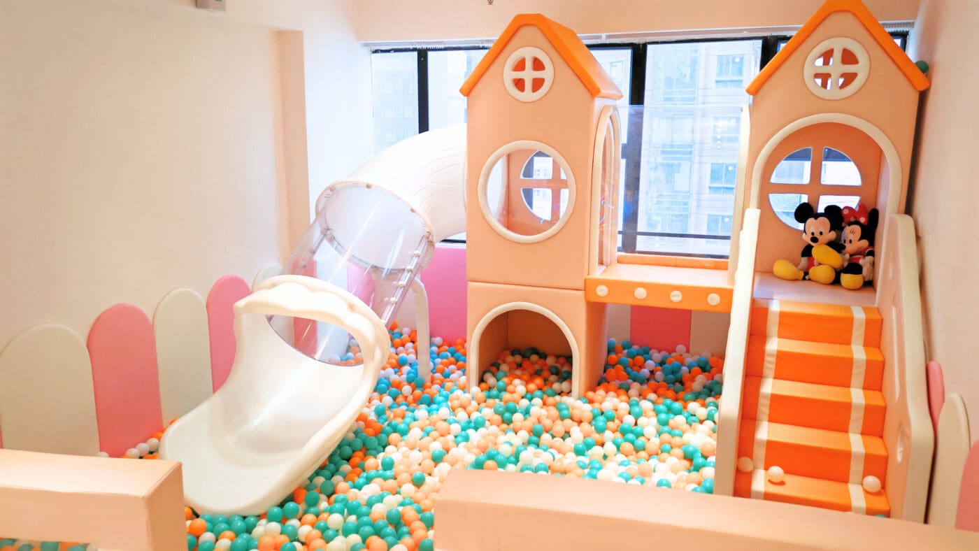 兒童區鋪設了安全的兒童地墊,並配備多款嬰兒和幼兒玩具。空間內有3.5米的波波池和大型滑梯,讓小朋友盡情放電。