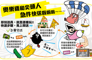 奧樂雞與尖頭人來當外送員囉~這個暑假,掰掰啾啾帶著神秘驚喜登場,快跟著奧樂雞一起去外送吧!衝刺、送貨、升級!規劃一個最棒的路線,送出最多的商品、完成最多的訂單吧! 你可以在書店、披薩飲料漢堡店領到貨品!找到需要變胖的人,把貨品交給他們! 可以得到報酬~後你會變更強,升級後還能得到各種炫砲能力!!
